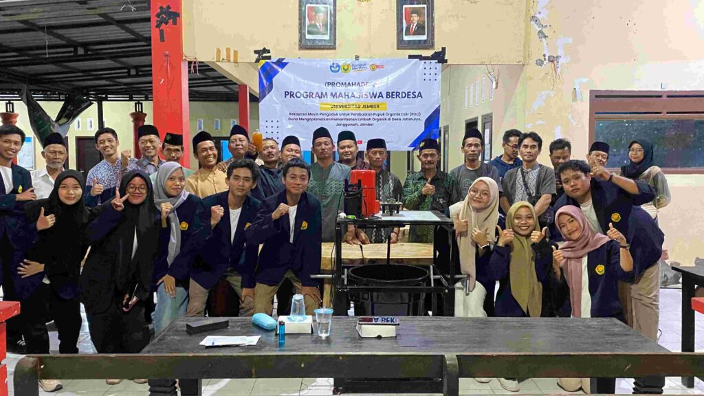 Jember, 23 Oktober 2024 – Mahasiswa Universitas Jember (Unej) kembali menunjukkan komitmennya dalam pengabdian kepada masyarakat melalui program PROMADESA (Program Mahasiswa Berdesa). Kegiatan ini dipimpin oleh Nailu Kotrin Nikmah dari Teknik Mesin dan melibatkan tim gabungan yang terdiri dari 5 mahasiswa Teknik Mesin serta 4 mahasiswa Pertanian. Didampingi oleh dosen senior, Prof. Ir. Mahros Darsin, S.T., M.Sc., Ph.D., dan dosen muda, Imam Rudi Sugara, S.T., M.T., para mahasiswa menjalankan program inovatif yang berfokus pada pengolahan limbah organik.